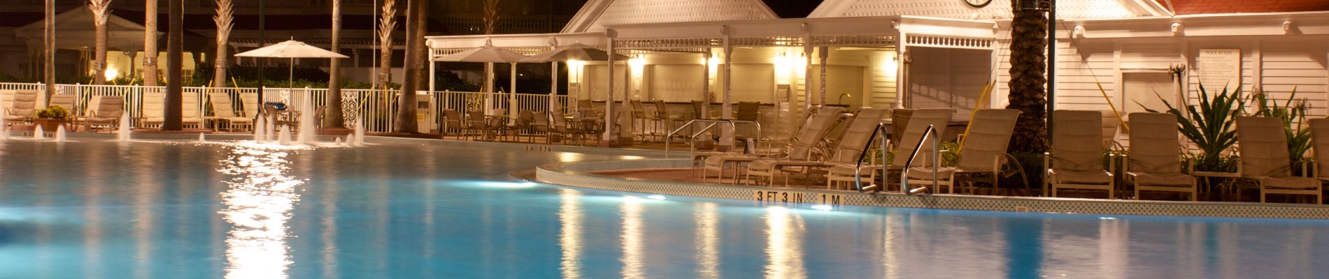 The Grand Floridian Resort is a classy place in every way. Unsurprisingly that classiness extends to its central pool area, where an elegant pool is bordered by lovely bar. The Courtyard pool bar is located in the main courtyard (hence the name), next to the largest, and quietest, pool at the Grand Floridian. While the view is not quite as nice as the Beaches Pool Bar (Grand Floridian buildings versus the beach and lagoon), there are generally far fewer children around this pool. If relative peace and quiet is more important to you, the Courtyard bar is the one for you.